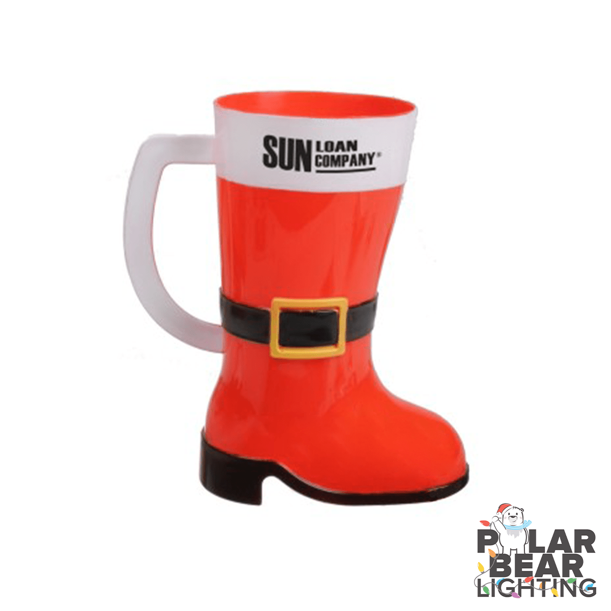 This plastic mug features details depicting Santa Claus’s boot. It holds up to 15 Oz. of liquid and provides a festive look for the Christmas holiday season! Add your company’s logo or message and hand these cups out during holiday parties, festive events, Oktoberfest celebrations, and more!